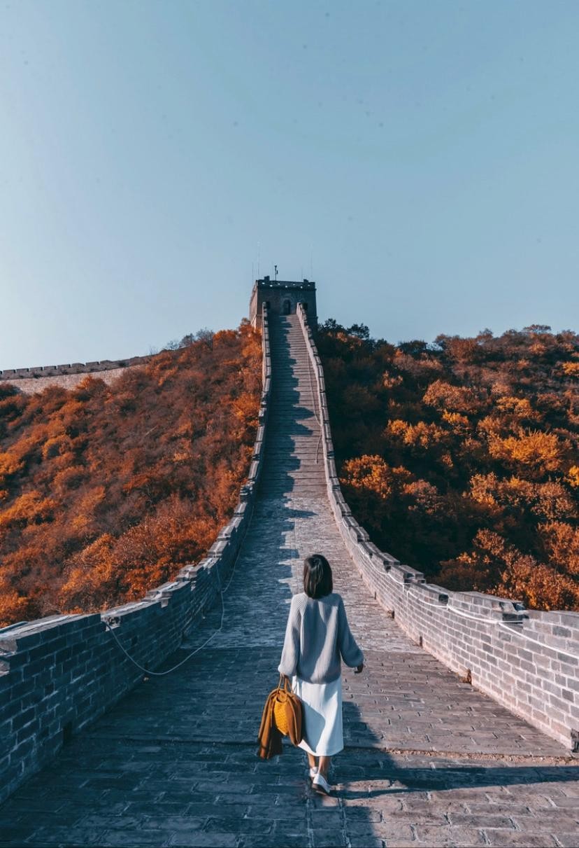 北京郊区中国最著名的历史建筑之一--中国长城。长城的历史长达2000多年,始建于春秋战国时期。今天所说的万里长城多指明代修建的长城,它东起鸭绿江,西至内陆地区甘肃省的嘉峪关。