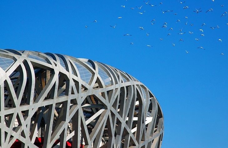 位于北京奥林匹克公园南部的鸟巢体育馆,可以同时在这里容纳91000名观众。奥运会期间,鸟巢作为主会场,承办了闭幕式的开幕式,也承办了其他的精彩比赛。今天,作为奥运遗产,体育馆一直是北京北部中轴线上的标志性建筑。