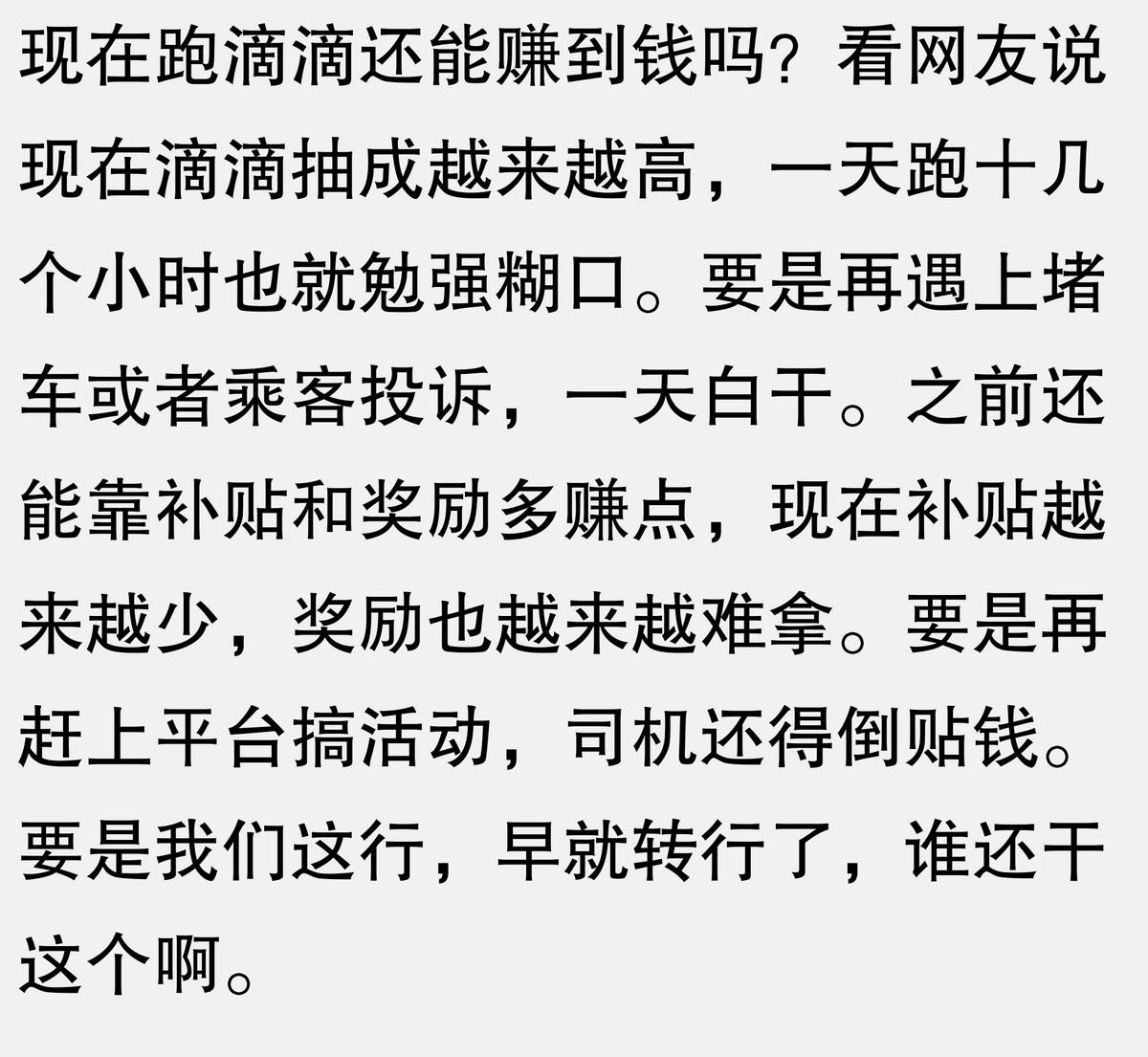 现在跑滴滴还能赚到钱吗?看看网友是怎么说的