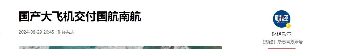 国产大飞机交付国航南航