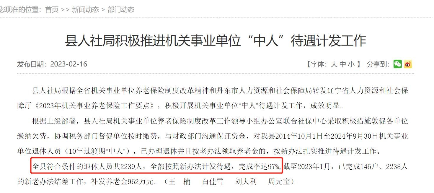 该县对于2014年至2024年退休的中人共有2239人,截至3月1日,完成率达到了97%,完成了2238人的补发工作,仅余1人。