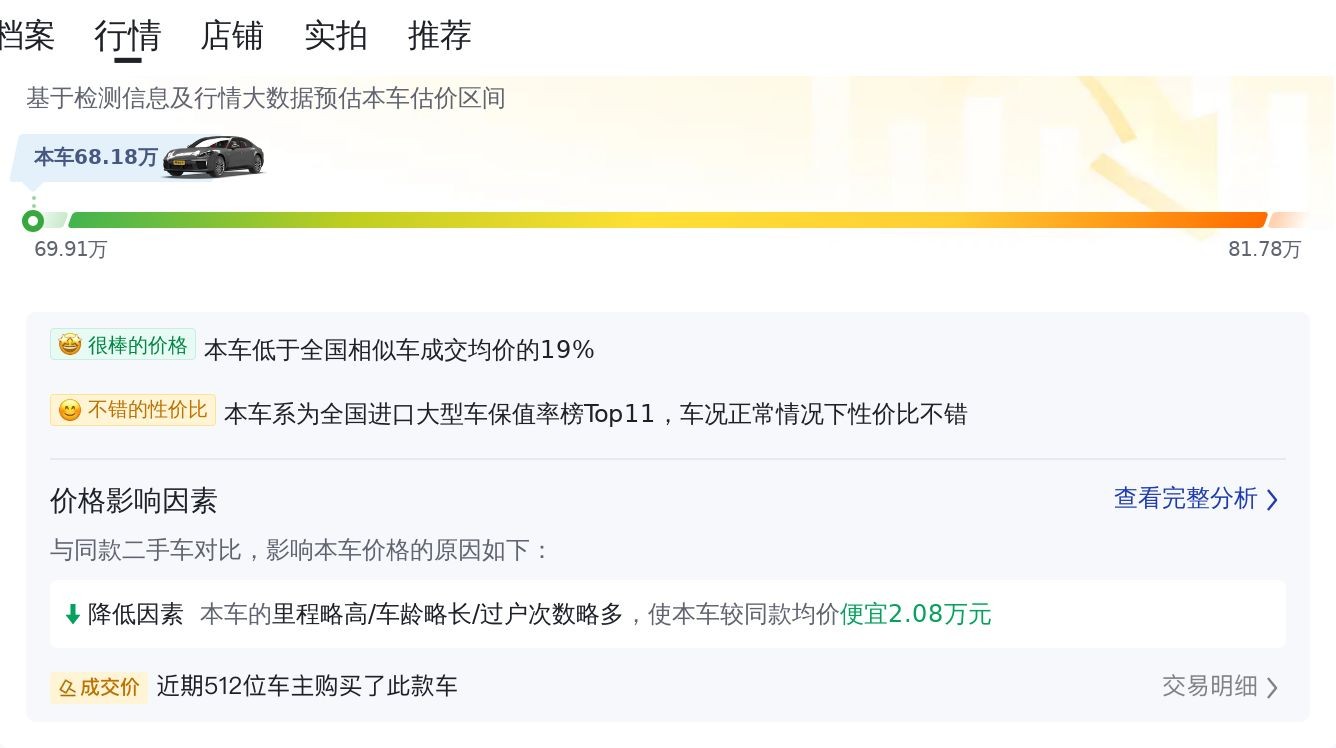 2019款保时捷 Panamera黑色大型轿车,7.7万公里,68.18万贵吗?