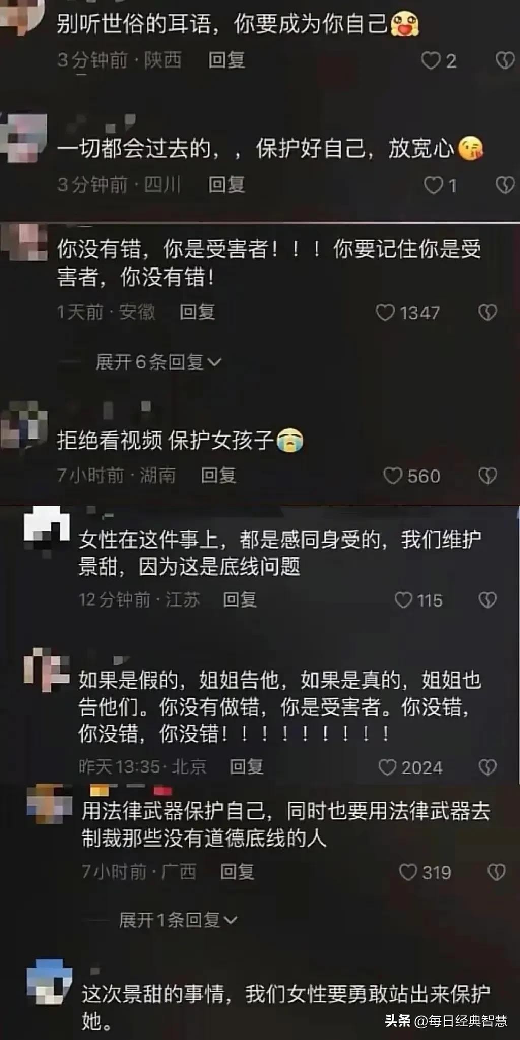 绝大多数善良的网友们,都能理解,景甜在这件事情上,是一个彻头彻尾的大受害者!作为明星,她最需要保护好的就是自己的声誉,作为女性,她最需要保护好的就是人身侵犯权,可是,这两样——她无缘无故,就都被前男友,一番毫无底线的操作,大受打击!