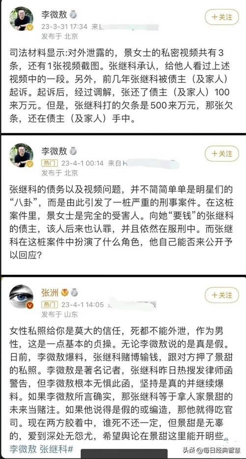 没有例外,当年深受其害的景甜,又再一次,紧跟热搜张渣男身后!