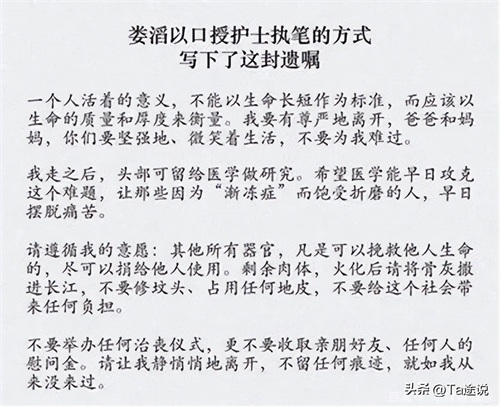 今日头条:痛心!“渐冻症”女博士娄滔遗憾离世,器官捐献未能实现. .