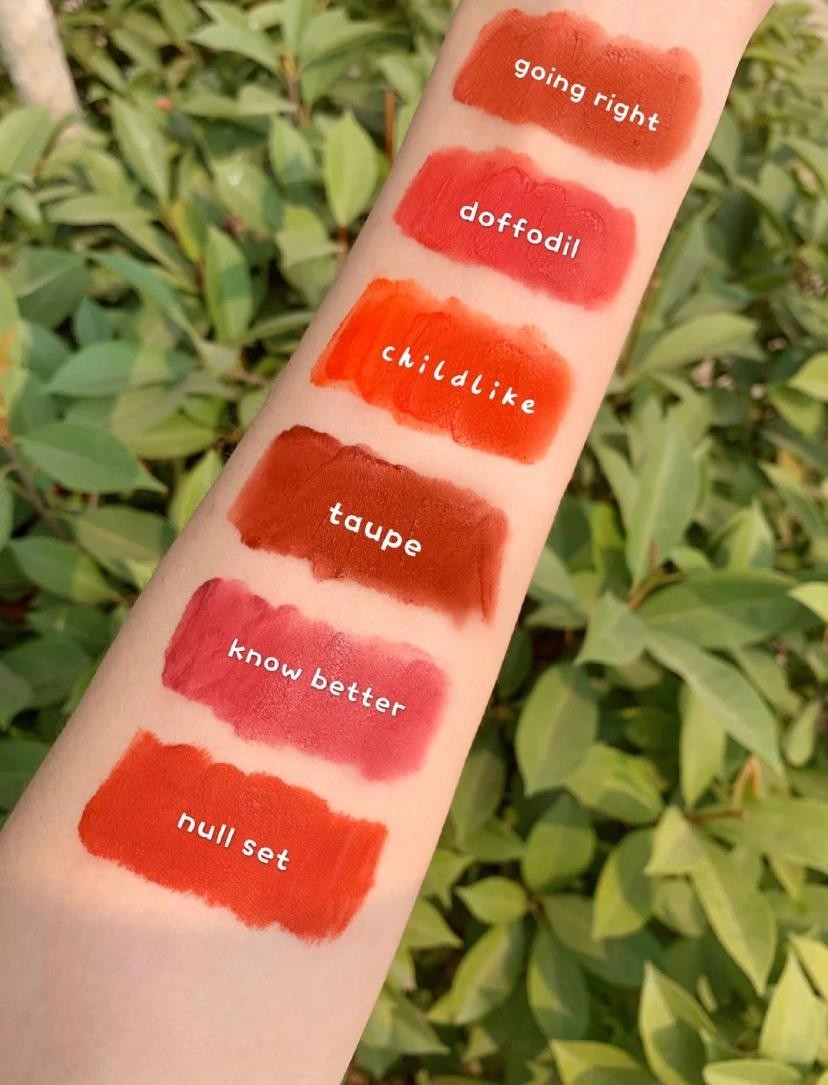 涂上它,自己都忍不住想多亲吻自己几口呢 丝绒唇釉的质地偏雾面哑光,会有一些干,但是没有到拔干很严重的状态,涂之前最好做好唇部打底哦。而且不易脱色,饭后留色也很好。后面给大家看看其他热门色号~