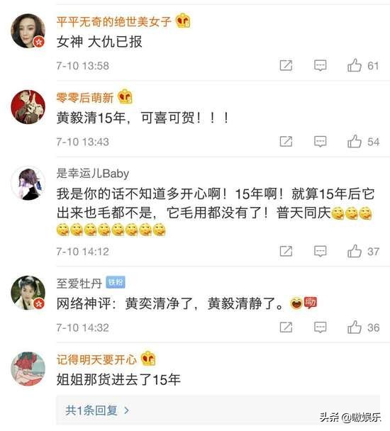 黄毅清被抓,网友表示是大快人心。离婚这么多年,黄奕可谓被这位前夫折磨得够呛,现在黄毅清被判15年,的确可以清静了。不少网友都到黄奕的社交动态下留言恭喜,表示:“太好了,孩子可以健康成长”,“你可以清静15年了”!