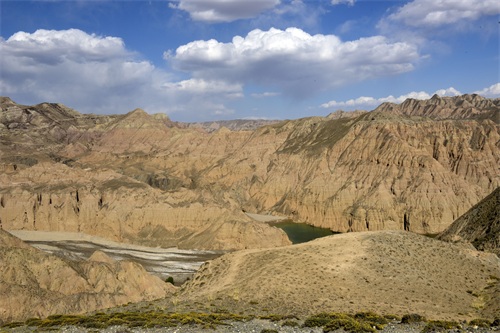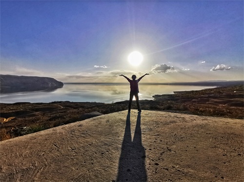 碧波荡漾、湖光山影、苍穹碧野,万千尘嚣遗落的一片寂静,与自然山脊明暗交错,色调赤红,生动绚丽,自然风光构现出一个原始、荒凉、粗狂的、别具一格的美,带给你视觉上很强的震撼力。