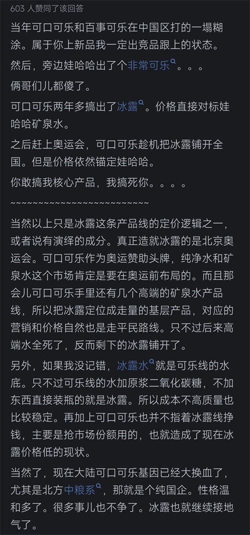 也许有人会说,冰露的低价是因为它的品质不够好。但事实上,对于很多消费者来说,他们并不需要过于奢华的饮品,他们更关注的是价格和实用性。冰露恰好满足了他们的需求,成为了他们日常生活中的一部分。