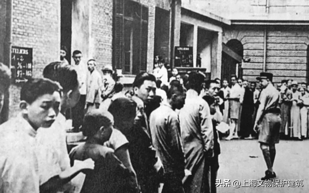 “孤岛”时期粮荒,市民在霞飞路巡捕房排队领粮票