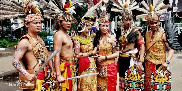 加里曼丹岛居民以马来族、达雅族、班查族、爪哇族、华裔等民族为主。达雅族是加里曼丹岛的原住民,现有人口800万左右,占全岛总人口的近40%;达雅族也叫达雅克族,主要居住在加里曼丹岛的内陆,属蒙古人种马来类型,讲南岛语系印度尼西亚语族的达雅语,原以采集狩猎为生,现主要种植水稻、玉米、豆类、红薯、油棕榈、天然橡胶、椰子,村寨周围栽种芒果、木瓜、香蕉,也饲养猪、羊等牲畜,沿海达雅族从事捕鱼、采集燕窝等生产活动;达雅族传统上信奉祖先崇拜,现多数信奉基督教;达雅族实行一夫一妻制,每个家庭5~6口人;达雅族的传统民居是高脚长屋,一个长屋可长达200米,每个长屋可居住几十户人家;一个达雅人村寨通常由1~8个长屋组成。达雅族有若干个分支,其中居住在加里曼丹岛西北沿海一带的人是伊班人(也叫海达雅人),讲与马来语十分相似的伊班语,多以海上捕鱼为生,擅长造船、竹编、藤编,多数信奉基督教。