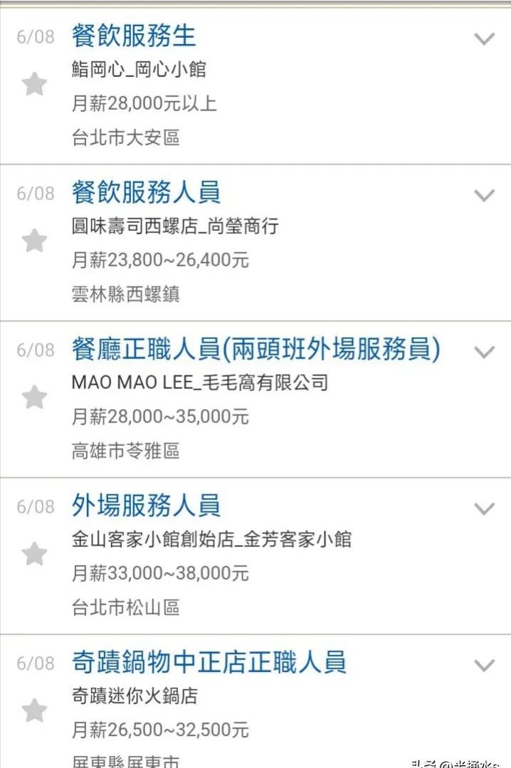 3、这只是平均数,算不得准确,台湾省的收入群体差异还是挺大的,就比如说餐厅服务员、超市收银员、导购、仓库管理、保安的工资基本上维持在4000RMB—6000RMB(2019年最低薪资未调整之前)。