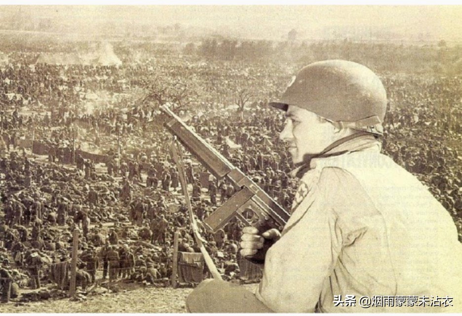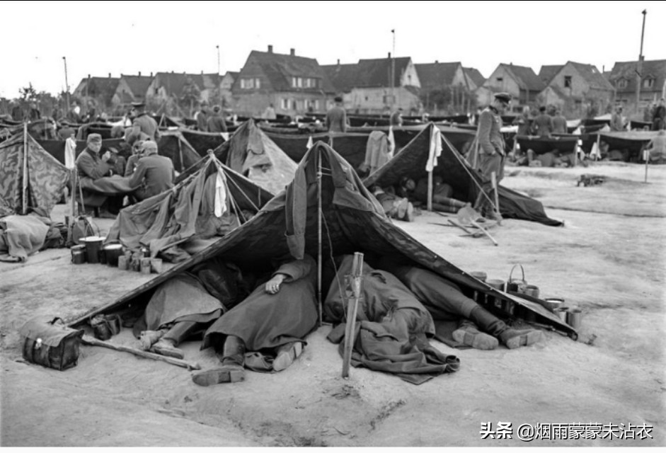 ↑被关在莱茵大营的德国俘虏,看起来连坐下的地方都没有,那名穿风衣的人很显眼,他是盖世太保吗?