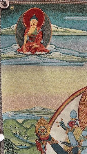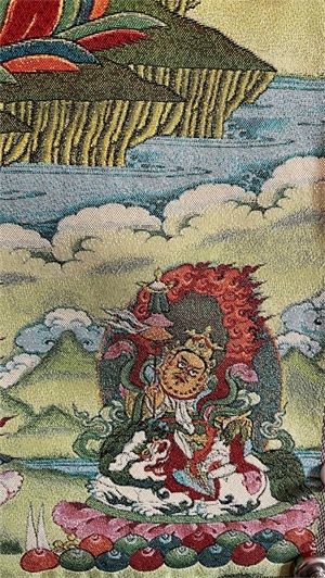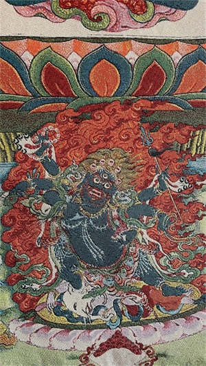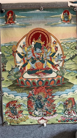 左上为如来佛,右上为欢喜佛祖。中下为六臂护法,左下为小护法。右下为财神护法。整体作工精细用金丝虽不是 纯金但也是光芒四射,也是不可多得的藏品。