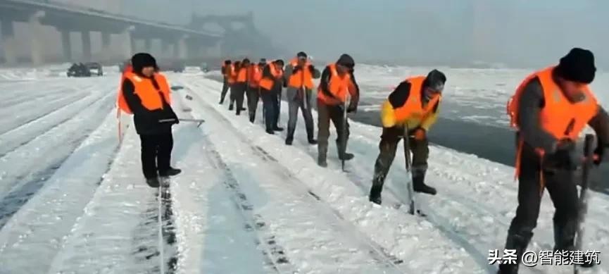 他们要在冰层厚度达到80厘米以上的江面上,挑选出透明度高、冰质坚硬的冰块。这些冰块经过严格筛选,才能成为冰雕节的原料。