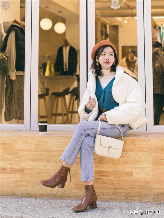 显白当然还要看黑色啦!亮面的黑色短款羽绒服,男友力十足,很酷的穿搭方式,轻盈又保暖,穿起来挡不住的帅气,搭配复古的牛仔裤,休闲简约,穿再久都不会过时,实穿性很高哦!不怕脏,随手一擦就OK,懒人必备的羽绒服款式哦!