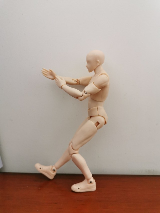 双手呈掌举起 置于胸前 掌心相对 十指向前
