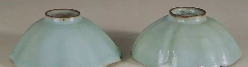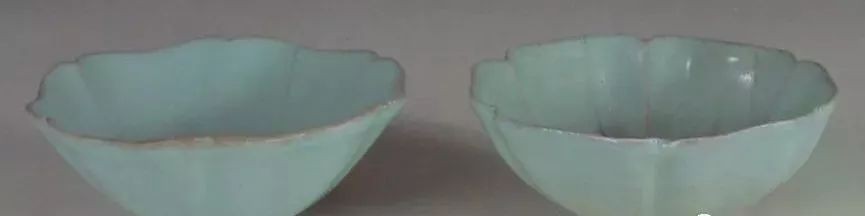 北宋官窑粉青葵花式小碗一对