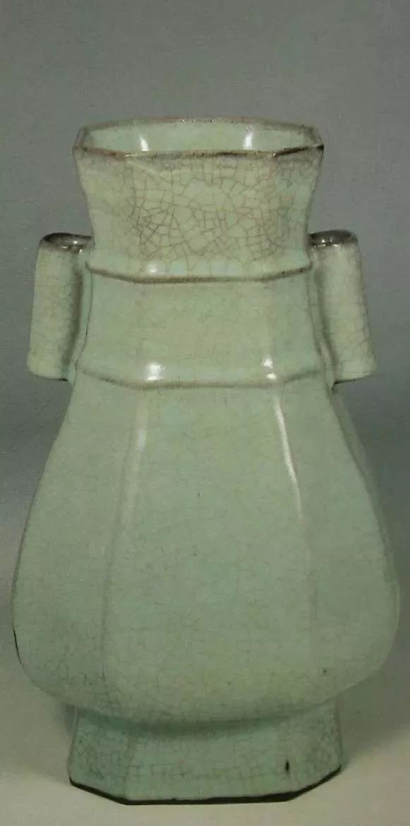 南宋 郊坛下官窑月白贯耳穿带八方壶