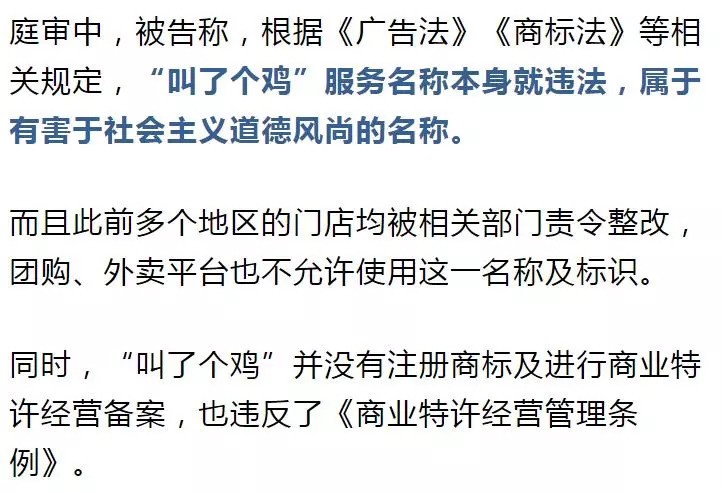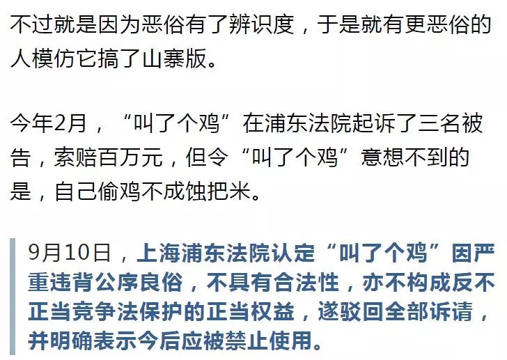 「关注」任性的代价!“叫了个鸡”严重违背公序良俗!法院:今后应被禁止使用