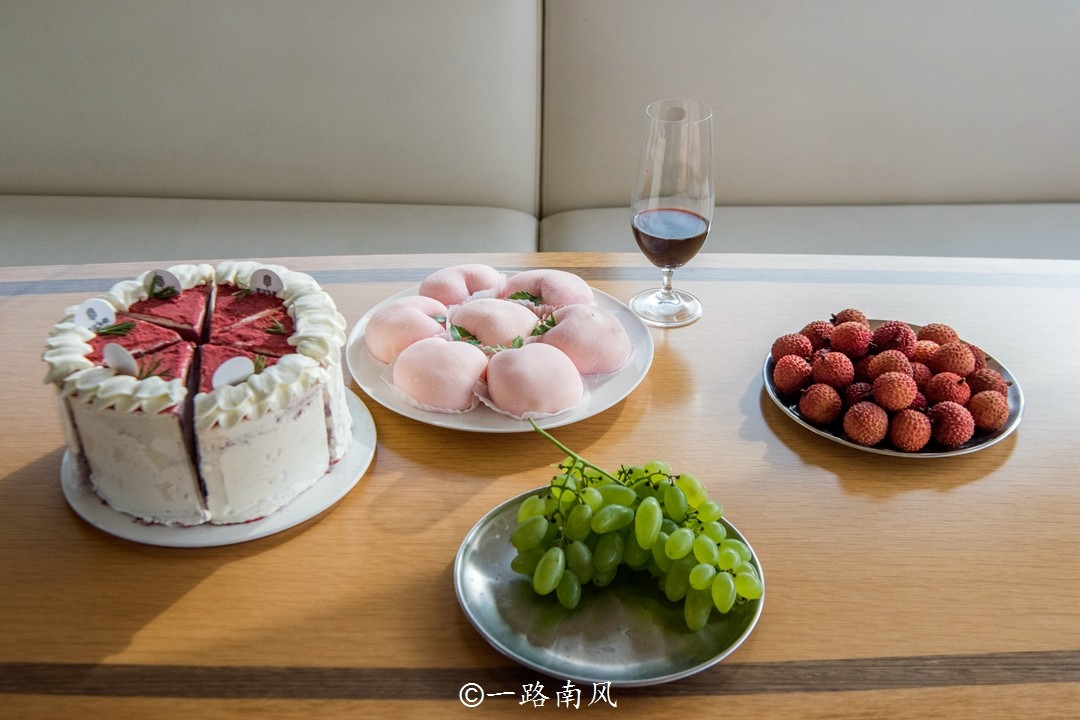 这艘豪华游艇设有顶楼观景平台和一楼豪华包厢,内有休闲小吧和休息室,游览的过程提供各种时令水果、蛋糕、雪媚娘等高端美食,整个行程既得到视觉上的满足,还感动了味蕾,值了!