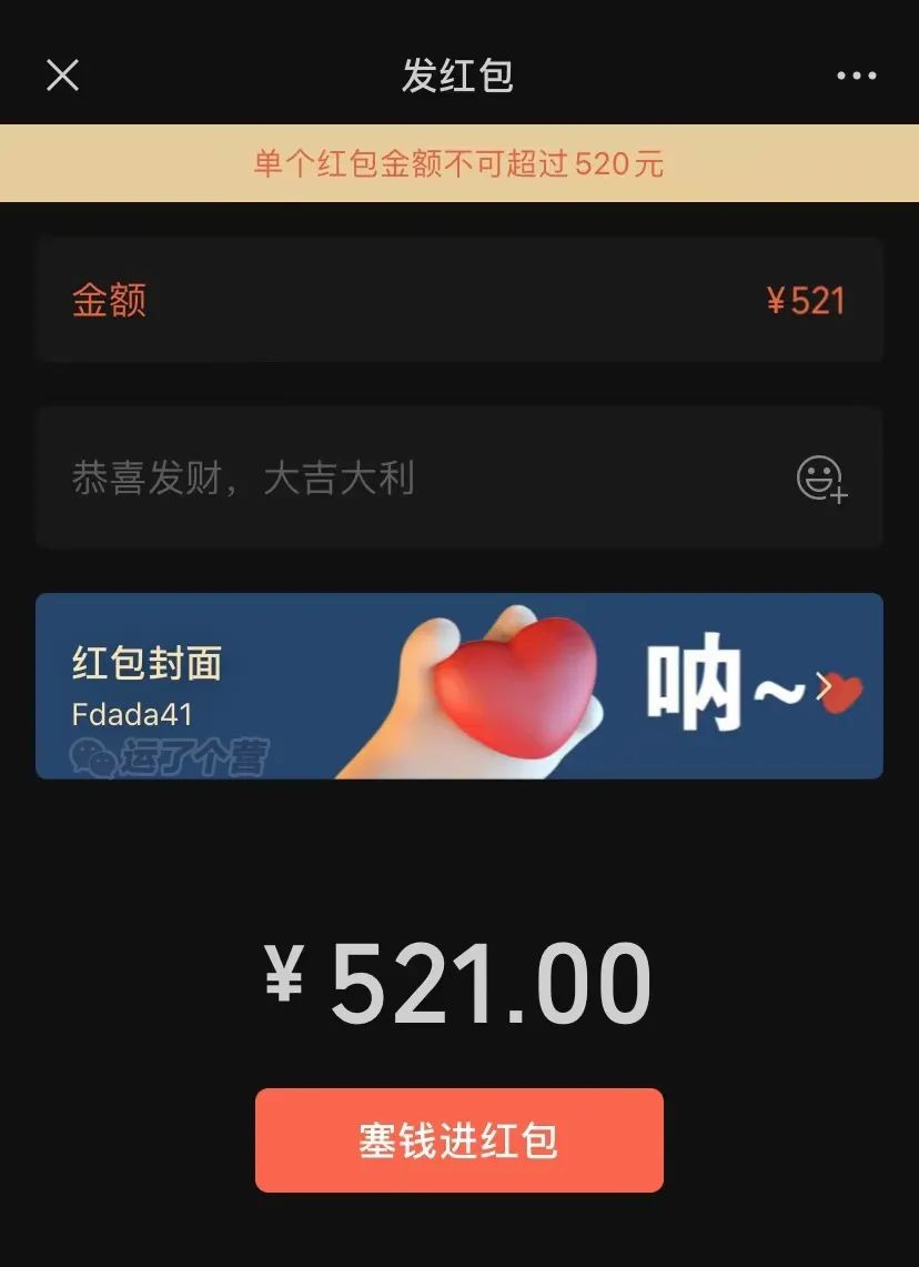 需要注意的是,发520红包仅限今日,明天就变回原限定金额了,想通过红包表白得抓紧时间。
