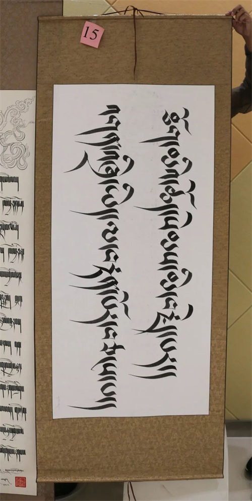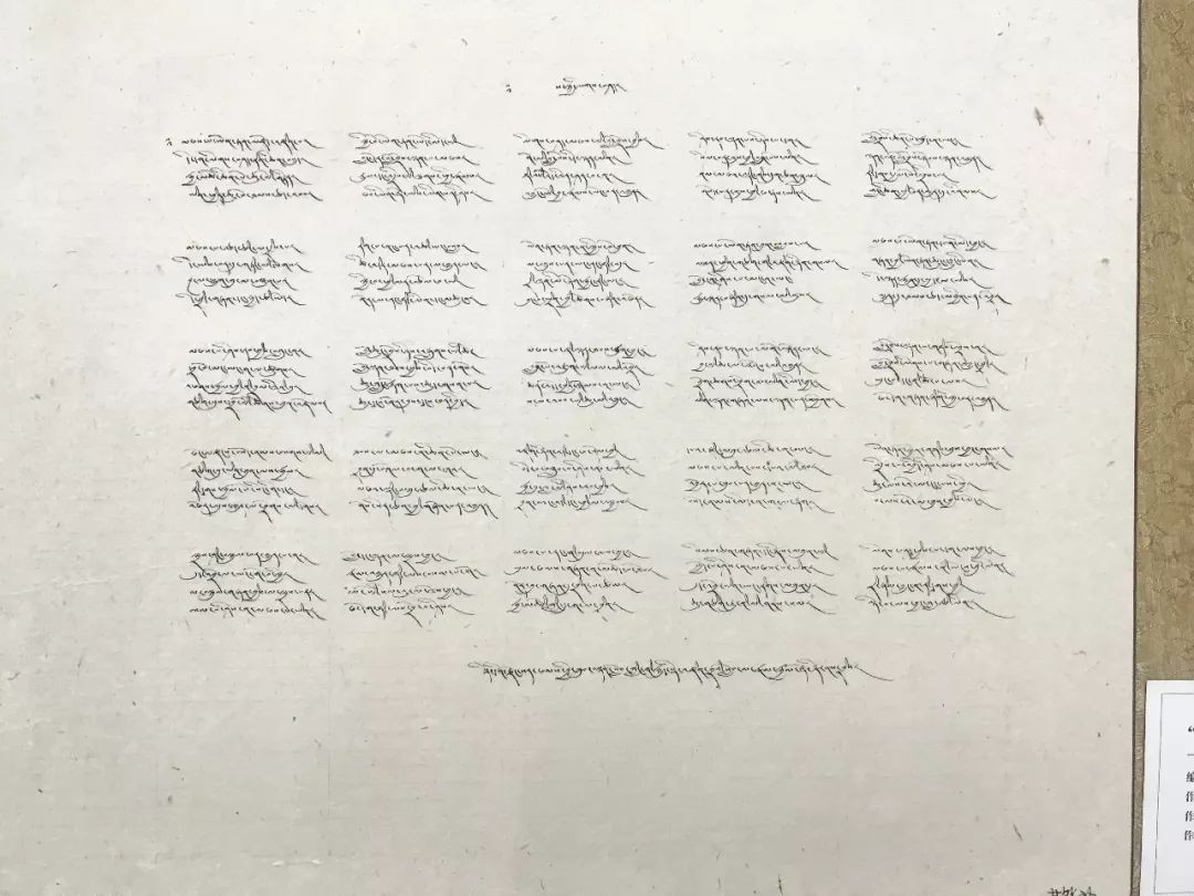 小贴士:藏文书法字体主要分为乌金体与乌梅体两大类,其下又分出八大体系,200余种字体,成为独树一帜的硬笔书法艺术,越来越为世人所关注。2008年,经国务院批准,藏文书法被列入第二批国家级非物质文化遗产名录。