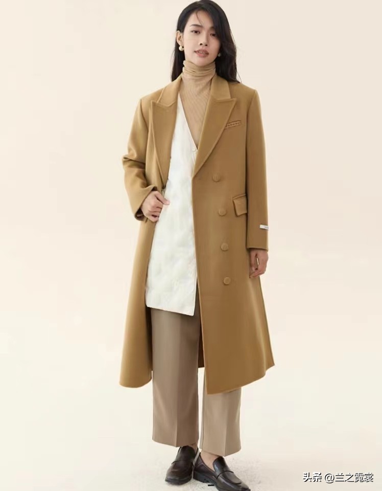 图片深驼色双面羊绒大衣挺括宽松,里面搭配长款马甲,这种穿搭在叠穿时既不会显的笨重,也不影响整体造型和气质。里面的马甲可以短款,也可以带领子或帽子的,颜色搭配以大衣颜色来参考。