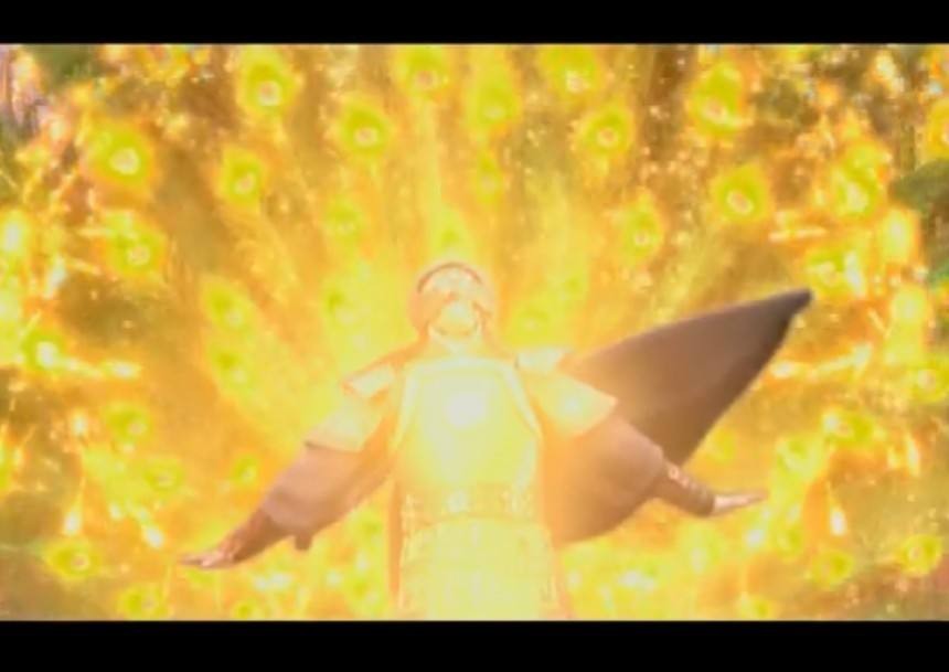 孔宣动用天赋神通五色神光,向着准提刷了过来,准提顺势用本命神通进入五色神光当中,用神通撑开了孔宣的妖身!孔宣得以降伏,显出原形,准提是坐在孔宣背上回归了西方极乐世界。