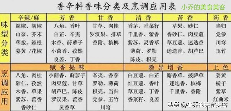 1张图,看懂50种香料味型分类,以及它们在烹调中的作用,值得收藏!
