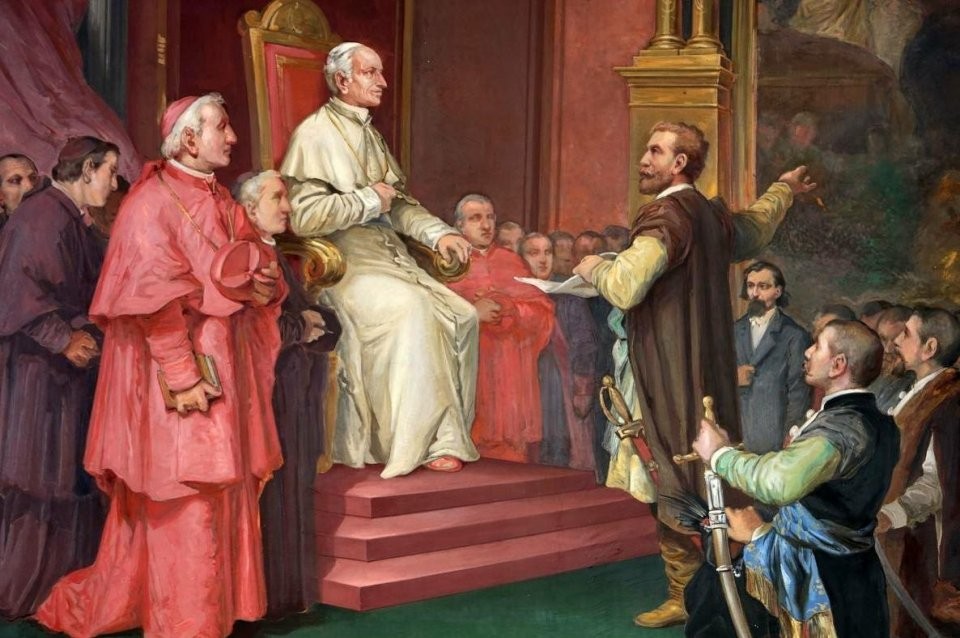 然而在卡诺莎,教皇拒绝了他的道歉,要求他屈服于教会的权威并接受惩罚。于是,亨利四世为了获得赦免,被迫跪在地毯上并向教皇认罪。