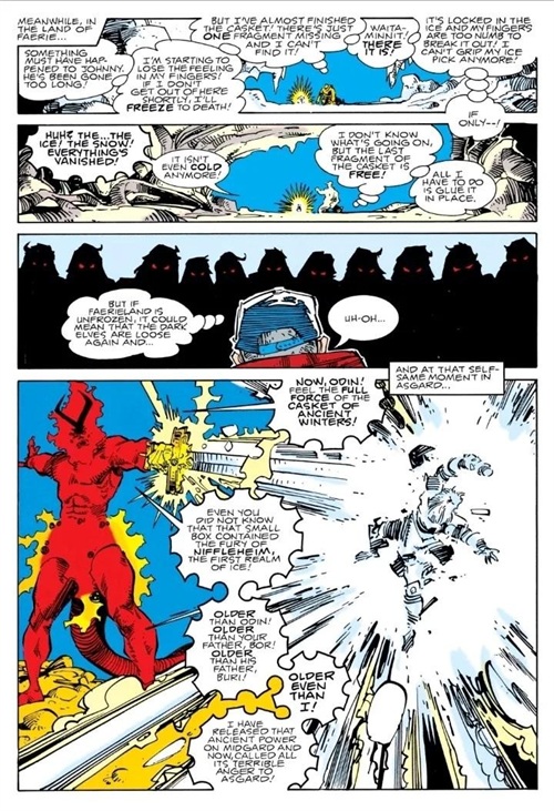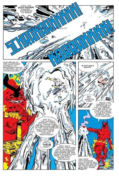 通过一个手势融化整座山,声称自己的力量与奧丁同等。