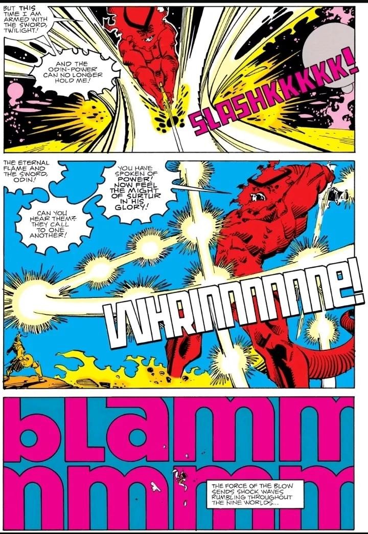 苏尔特尔能够伪造 雷神之锤的复制品——这把锤子包含一个星系大小的超级风暴,摧毁了几个行星、太阳和卫星。