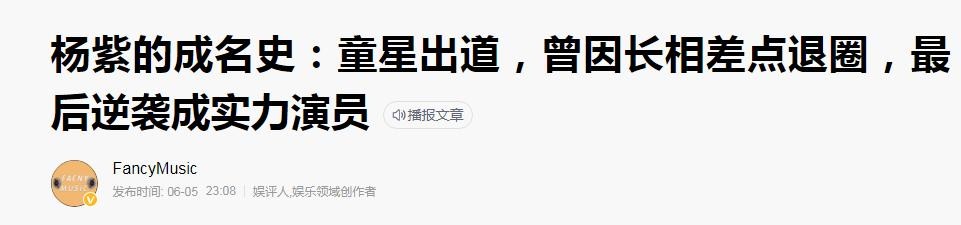 杨紫:小时候很丑女孩的人生逆袭之路