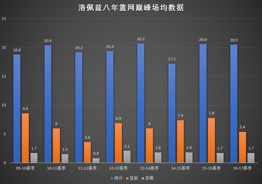 虽然洛佩兹的表现颇有些高不成低不就,并且在此期间只入选了一次全明星替补,但他连续八年场均19.6分+6.5板+1.6帽的数据,足以证明洛佩兹远高于联盟平均水准的实力。并且除良好的得分能力外,洛佩兹还展现出了相当强悍的适应能力,库里带来的小球旋风席卷了联盟,大洛也开始顺应时代开始出手三分球。