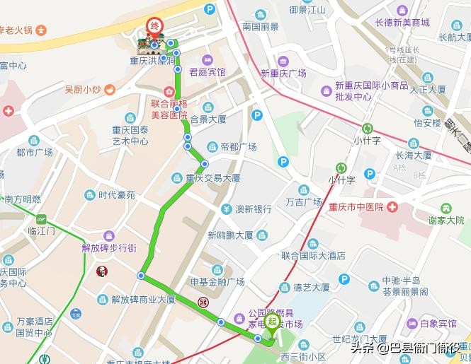 “洪崖滴翠”在今沧白路洪崖洞,从人民公园经邹容路,民权路,八一路,临江支路,铁板巷步行1000米就可到达。