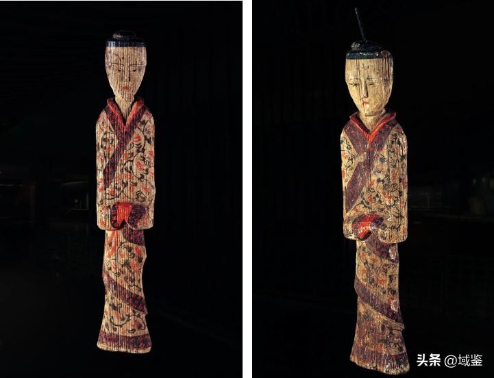 右 戴冠木俑 马王堆一号汉墓(辛追) 尺寸:俑高79厘米,头长14厘米,肩宽19厘米