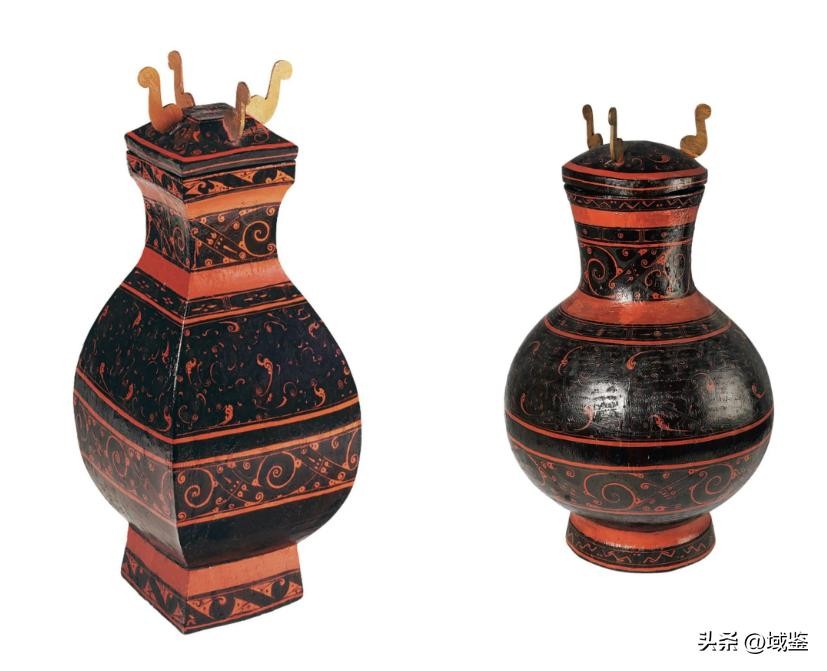 左 云纹漆钫 马王堆一号汉墓(辛追) 尺寸:高52厘米,腹边长23厘米