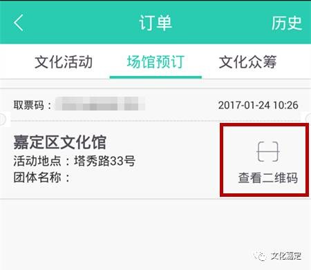 1.打开“文化嘉定云”手机端APP“我的订单”,点击“查看二维码”,通过订票电子码验票入场;