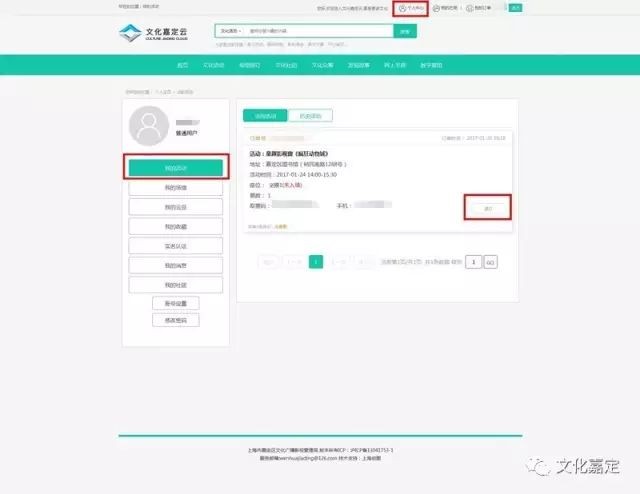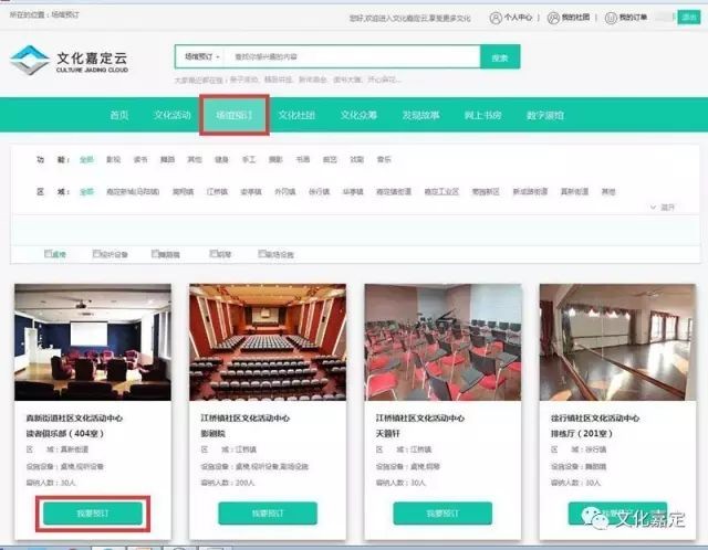 登录“文化嘉定云”网站www.whjd.sh.cn后,进入文化活动栏目;