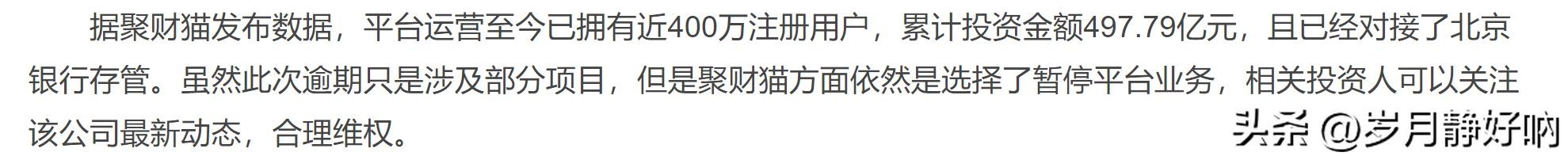 只是没想到,只红火了3年的光景,随着2018年7月18日,该公司的一纸公告,聚财猫开启了长达5年的摆烂,让无数投资人欲哭无泪,无数的家庭支离破碎!