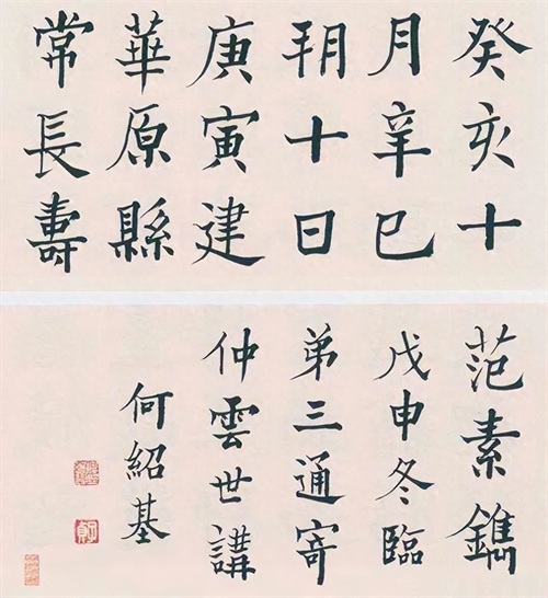 而何绍基的楷书更是别具一格,融合了颜真卿和褚遂良的笔意,透露出一种谦谦君子的气质。他还巧妙地将欧阳询的风格融入其中,使得楷书更加灵活和多样化。尽管颜真卿楷书的格调在他的作品中被淡化了,但这并没有造成违和感,反而使得作品更加清新自然。有人认为,他的书法是一种颠覆,是清朝书法的高峰。