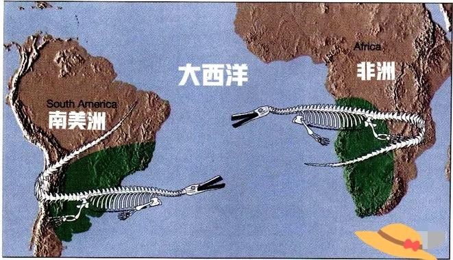 魏格纳发现:南美洲(巴西)东端的直角凸出部分,与非洲西岸凹入大陆的几内亚湾非常吻合