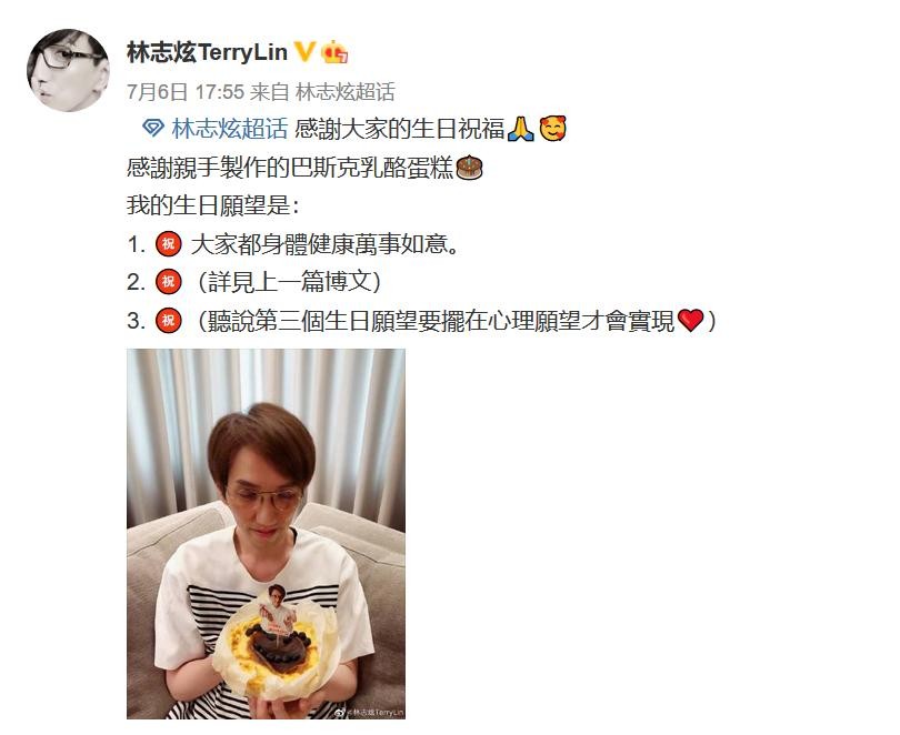 而在7月6日,林志炫回应来自网友的生日祝福,并配上照片,照片中的林志炫捧着一个小蛋糕,身形非常消瘦。他坦言自己的一个生日愿望是:祝大家都身体健康万事如意。看来林志炫本人经过一场大病,似乎更加明白健康的意义。