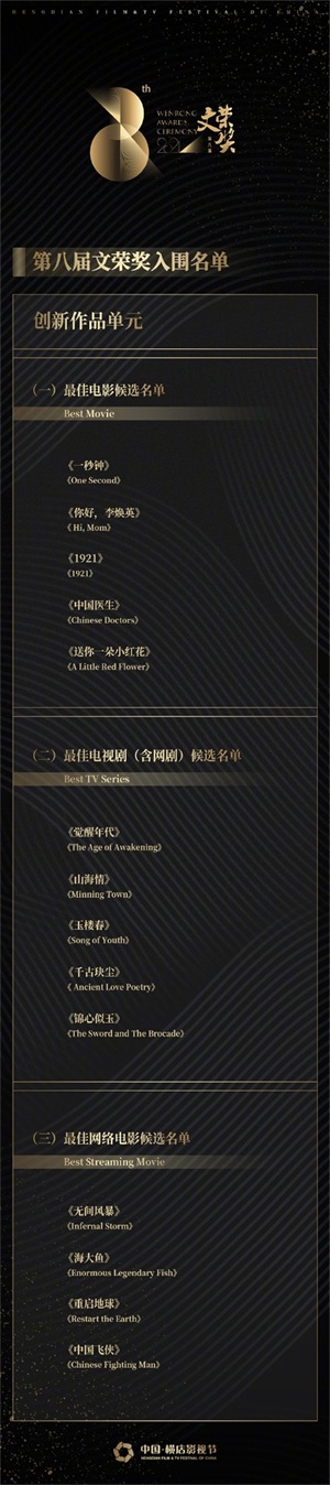 昨天第八届文荣奖入围名单公布了,但这只是入围哦,不一定获奖!