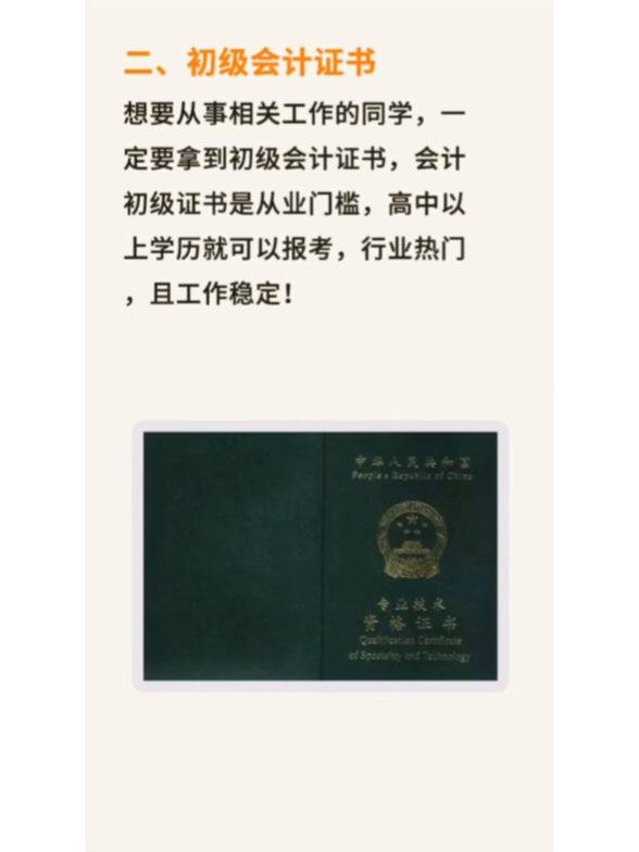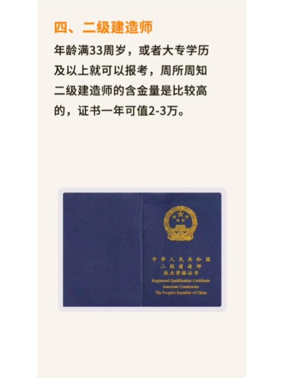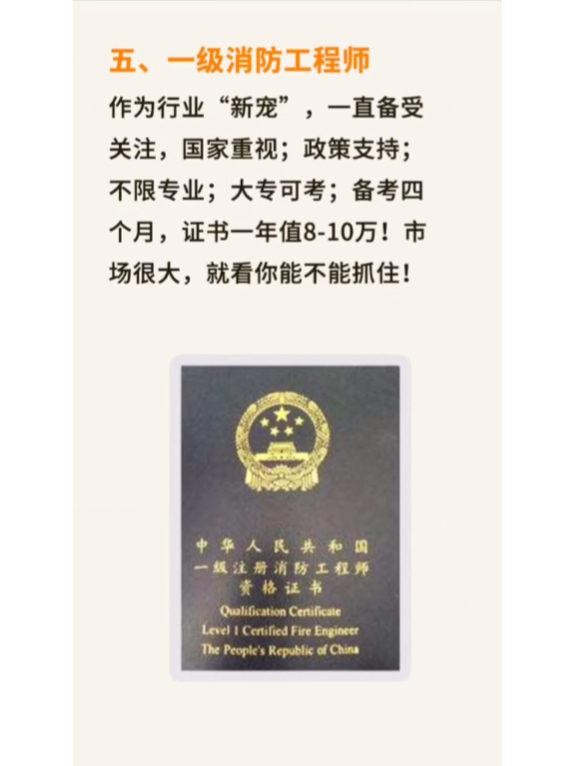 教师资格证,初级会计证,导游证,二级建造师,消防工程师。