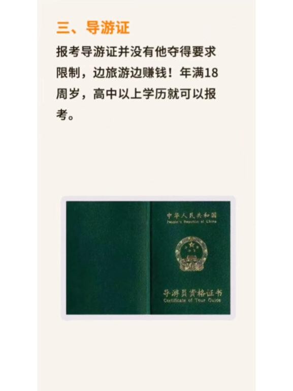 高中以上学历可以考。全职可以,兼职也行,即使不当导游,也可以拿着到景区免费玩。