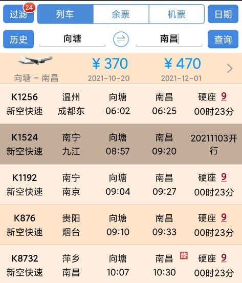 从这五次PK的情况看,株洲火车站比向塘火车站的客运列车更多一些,也更方便一些。