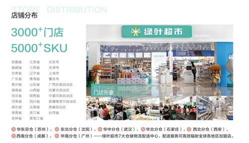 绿叶超市7大仓储物流中心,辐射全球、高效配送;华东总仓(苏州)、东北分仓(沈阳)、华中分仓(武汉)、华北分仓(石家庄)、西北分仓(西安)、西南分仓(成都)、华南分仓(广州)。