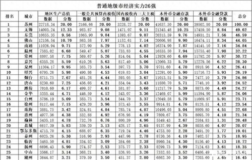 国内26座最强地级市排名,苏州稳居地级市榜首,无锡领先东莞嘉兴